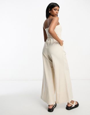 ASOS DESIGN bandeau linen look jumpsuit with detachable straps in oatmeal